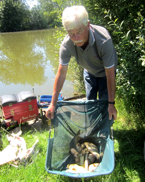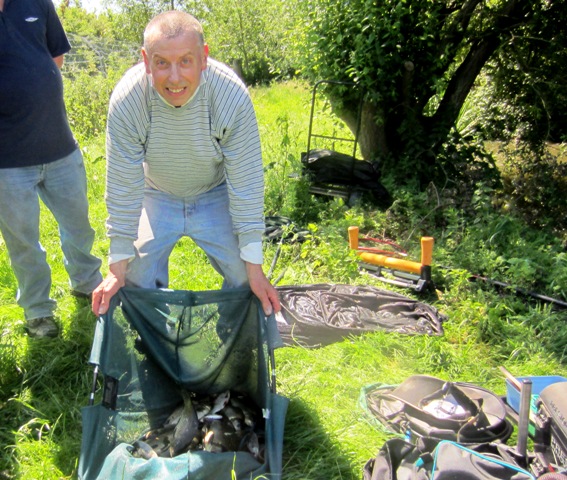 With soaring temperatures 10 anglers lined the bank at Willow Poll to fish for The Goodwins Cup and it turned into a red hot contest between father and son, Ronnie and Ian Kinsella. On this occasion Ian took the honours with 11lb 9oz with Ronne second with 11lb 4oz. Third place went to John Dodd with 9lb 5oz and in fourth came Sean Cookson with 7lb 14oz including “fish of the day” a superb 5lb 4oz Common Carp.