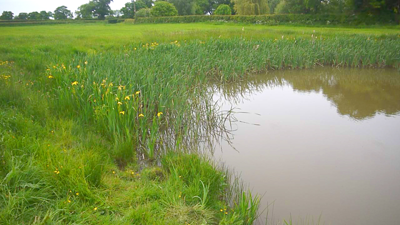 Proceed from the High Street towards Chester and take the 2nd turning at the roundabout at the junction of the A49 (Tarporley Bypass). Proceed about 1 mile and turn immediately after the Bulls Head Pub into Corkscrew (Crooked) Lane and continue straight on until you come to a house called The Spinney, just after house is a is a field gate on the left, the Farm Pond is 150 yards into the field following the hedge line on the left.